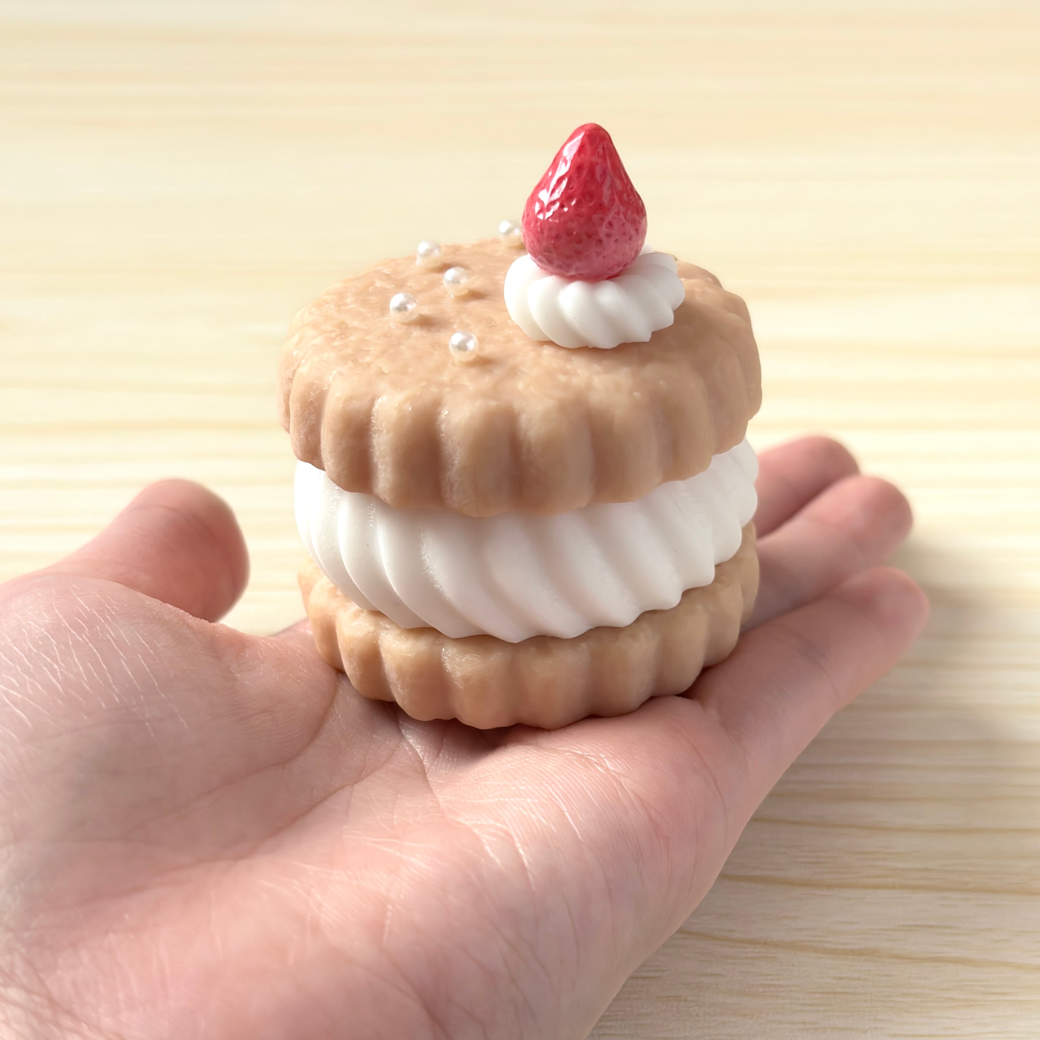たっぷりのクリームを、美味しそうなテクスチャーにこだわったクッキーでサンド。